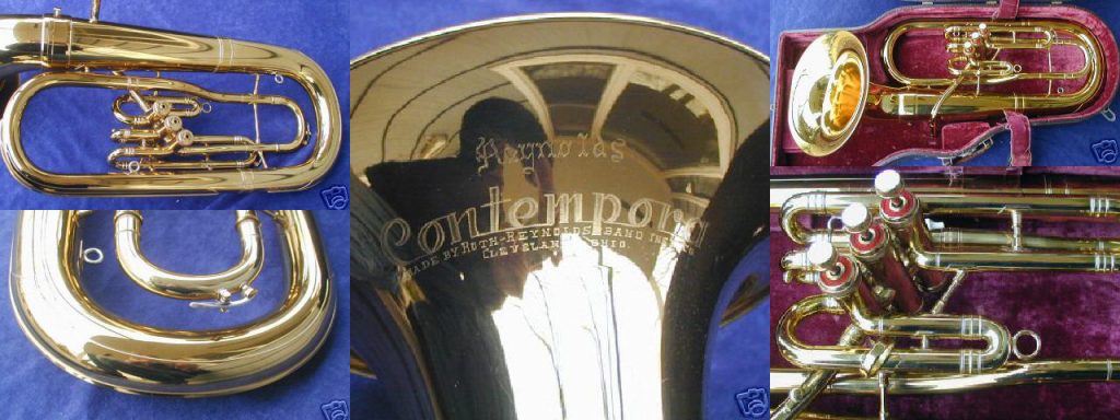 After 1952, the baritones should be engraved with "Contempora" and "Made by Roth-Reynolds". Model 120T does not appear to have lasted long, though a similarly described trigger appears on low brass tubas and recording basses in the 1950s.