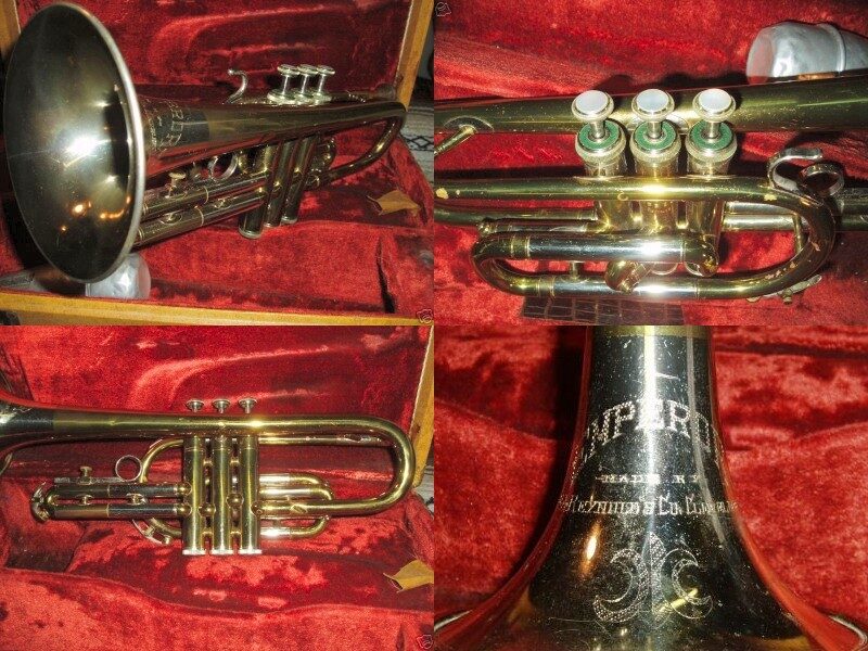 Acoustically designed for promising students and those of advanced talent. Often selected for beginners by discriminating teachers and parents who want the added features that the Emperor provides for their children. Perfect fitting, hand-lapped nickel-silver valves with top action springs. Professional type mouthpiece. Music lyre.