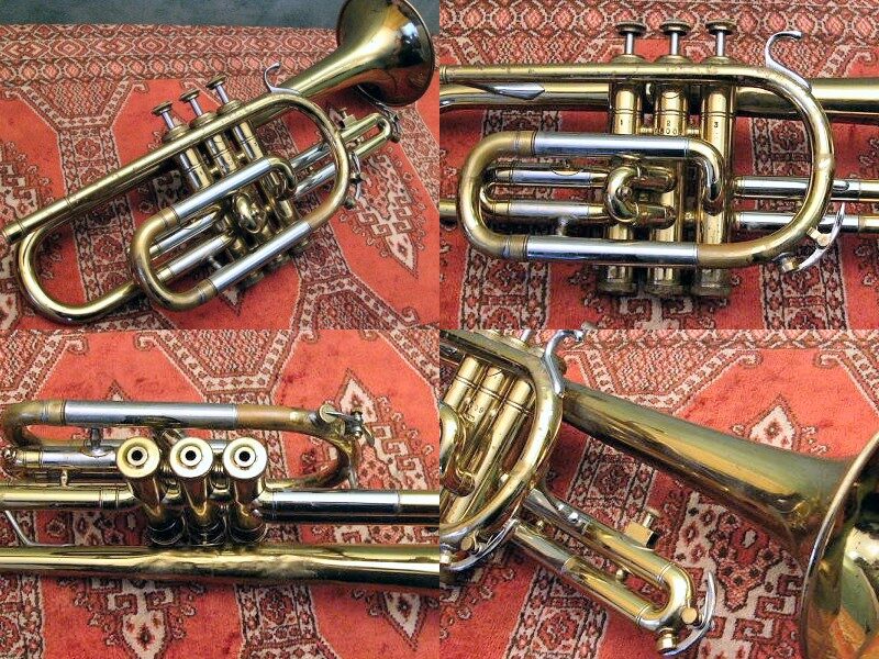 Targeted at advanced student musicians and community band players, the Emperor cornet was an intermediate horn and a step-up model from the Roth line. Built with the same wrap style as the Roth model, both are easily distinguished from the higher-end Reynolds cornets by the lack of the "underslung" lead pipe design.
