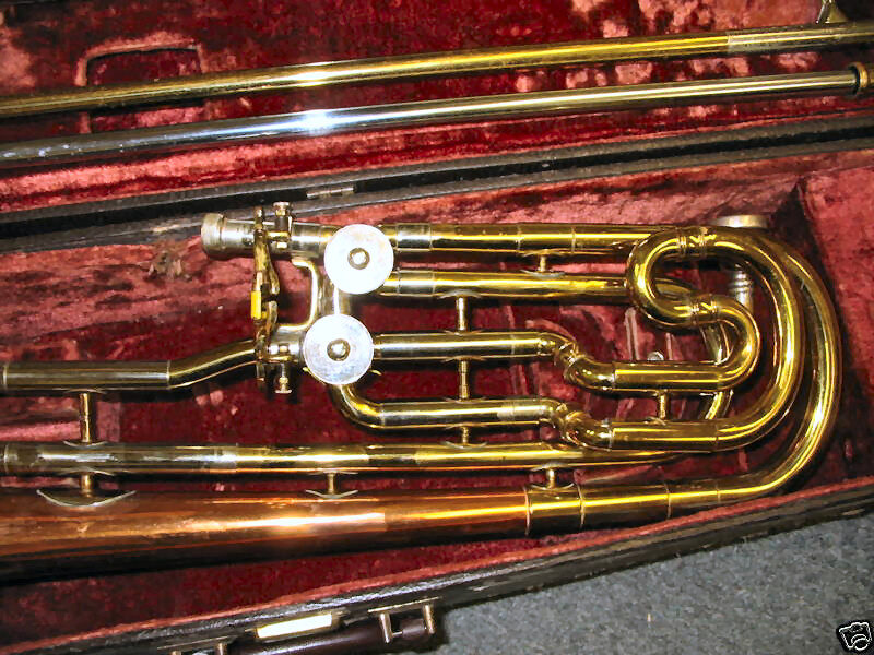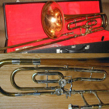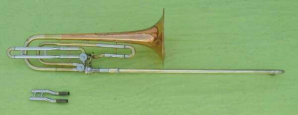 The double valve came about when we were playing the Bartok Concerto for Orchestra which, as you know, was commissioned by Koussevitsky and premiered by the Boston Symphony. I figured there must be a way to get the low B, and if I added another length of tubing I could do it. I made the plans for it and submitted it to the Reynolds Company and they said, "Sure, we'll do it." So it worked. But you know the mechanics of the trombone; the air doesn't go as freely through the valves. But I didn't have too much trouble. I used to make the gliss pretty well with it. The secret is to hit it, and when you move the slide, you're already off the second valve. Anyway, Reynolds gave me one of the horns since I had the idea and then they commercially marketed it.