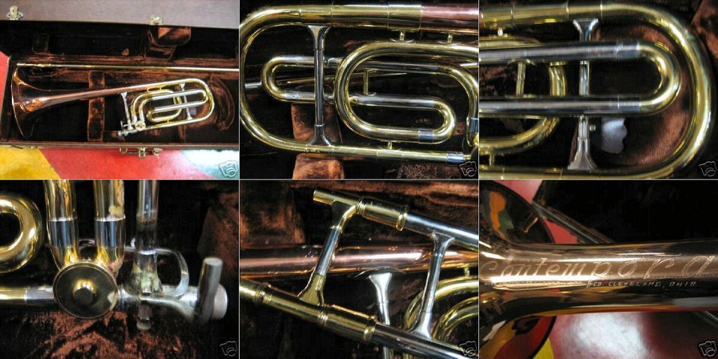 I bought my double valve Contempora from the legendary teacher Donald Reinhardt, in 1970. He had four of these beasts in his studio which he said had been the demo horns made for the Metropolitan Opera (NY) orchestra. I had my pick of the litter. My teacher had studied with him and brought me for a lesson and to get a “new” trombone. It is a sentimental favorite — a decent, multipurpose instrument that is essentially a compromise sort of horn. The top is great as is the middle, but the bottom was stuffy for me. After fitting it with a Callet lead pipe, the output was considerable better and more focused. Though I switched to another instrument about three years ago, this is still a terrific horn…