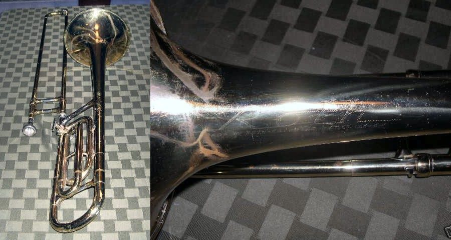 Roth trombones made c.1952 and later are marked "Made by Roth-Reynolds" instead of "F.A. Reynolds". In addition, the main bell engraving changed to a lengthwise script that simply says “Roth”. Roth instruments became the new entry-level models in the combined Roth-Reynolds catalog and were made primarily of brass components with minimal nickel-silver trim.