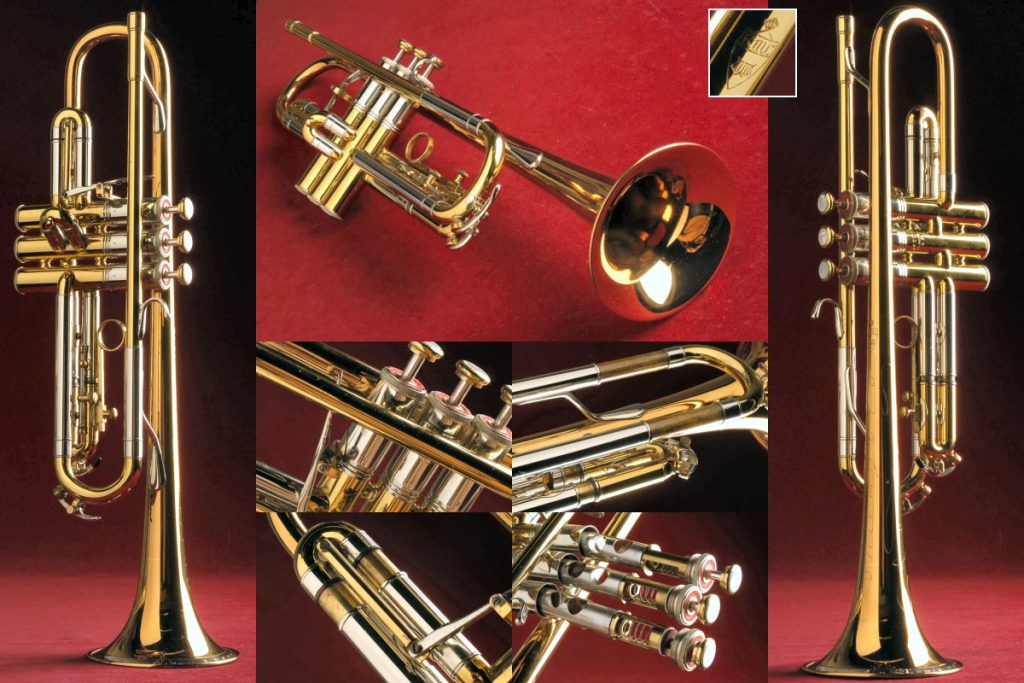 Designed with a bore that meets the exacting requirements of world-reknown artists, this instrument will give every performer complete freedom of interpretation and control. Each instrument produces its traditional tonal color -- brilliance in the trumpet and mellowness in the cornet -- with exceptional projection and carrying power in all dynamic levels. Solid monel-nickel valve pistons for perfect action over a longer period of use. Bronze-alloy bell. Optional first valve trigger.